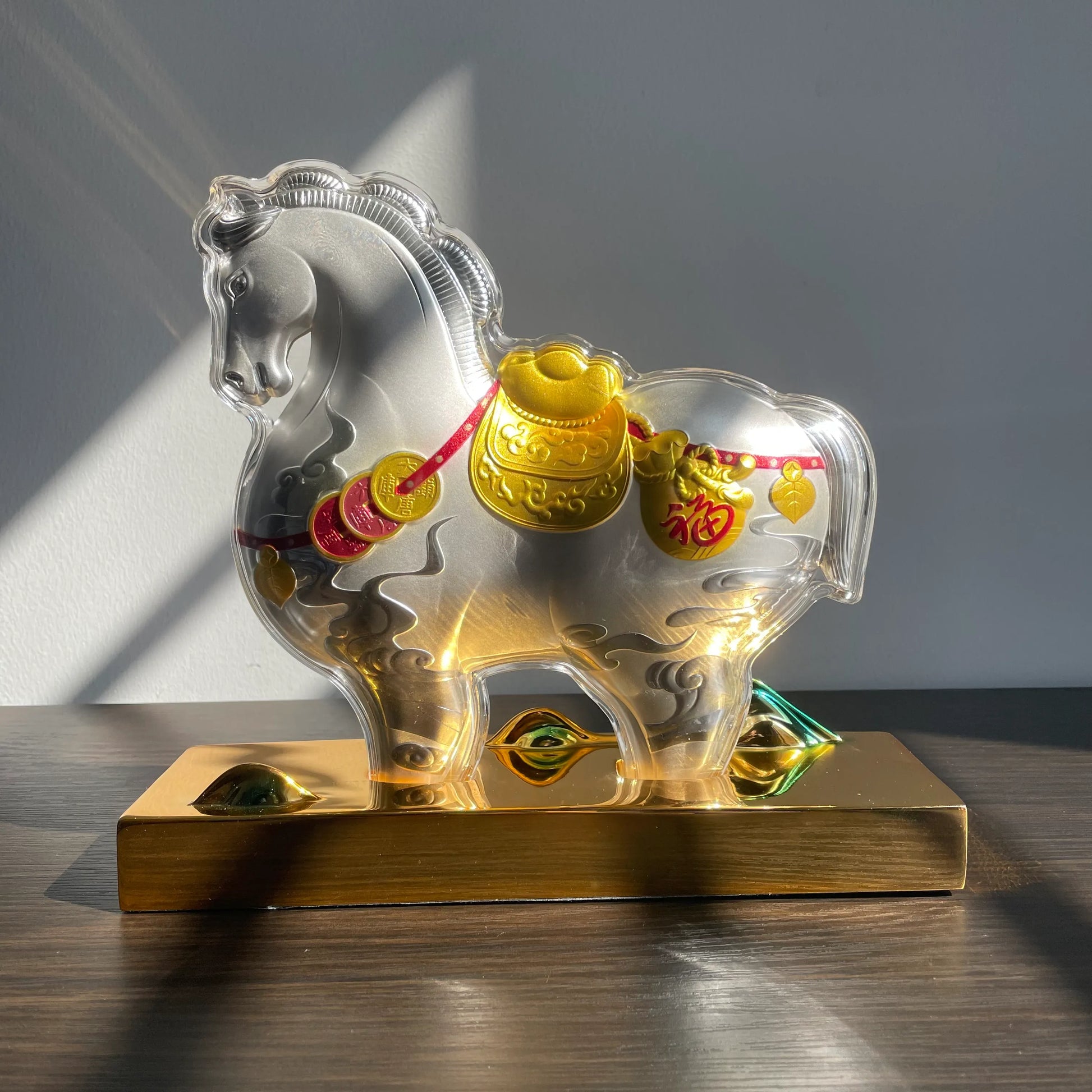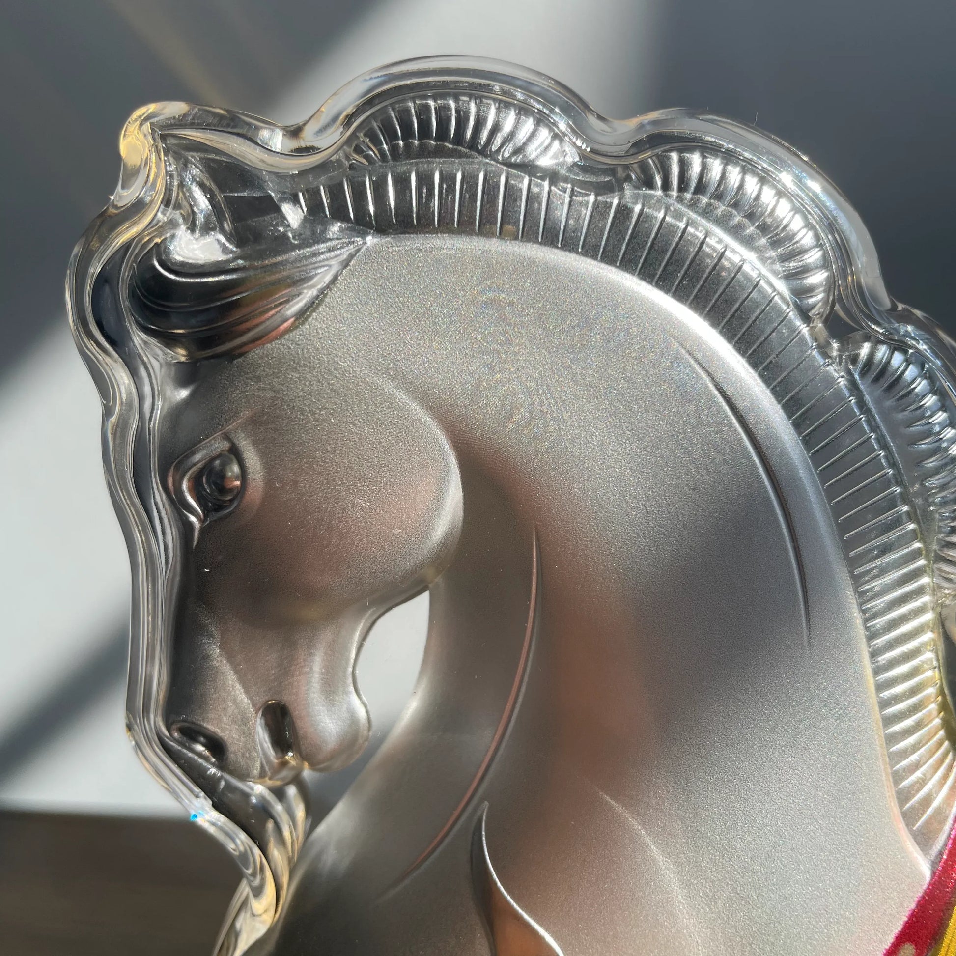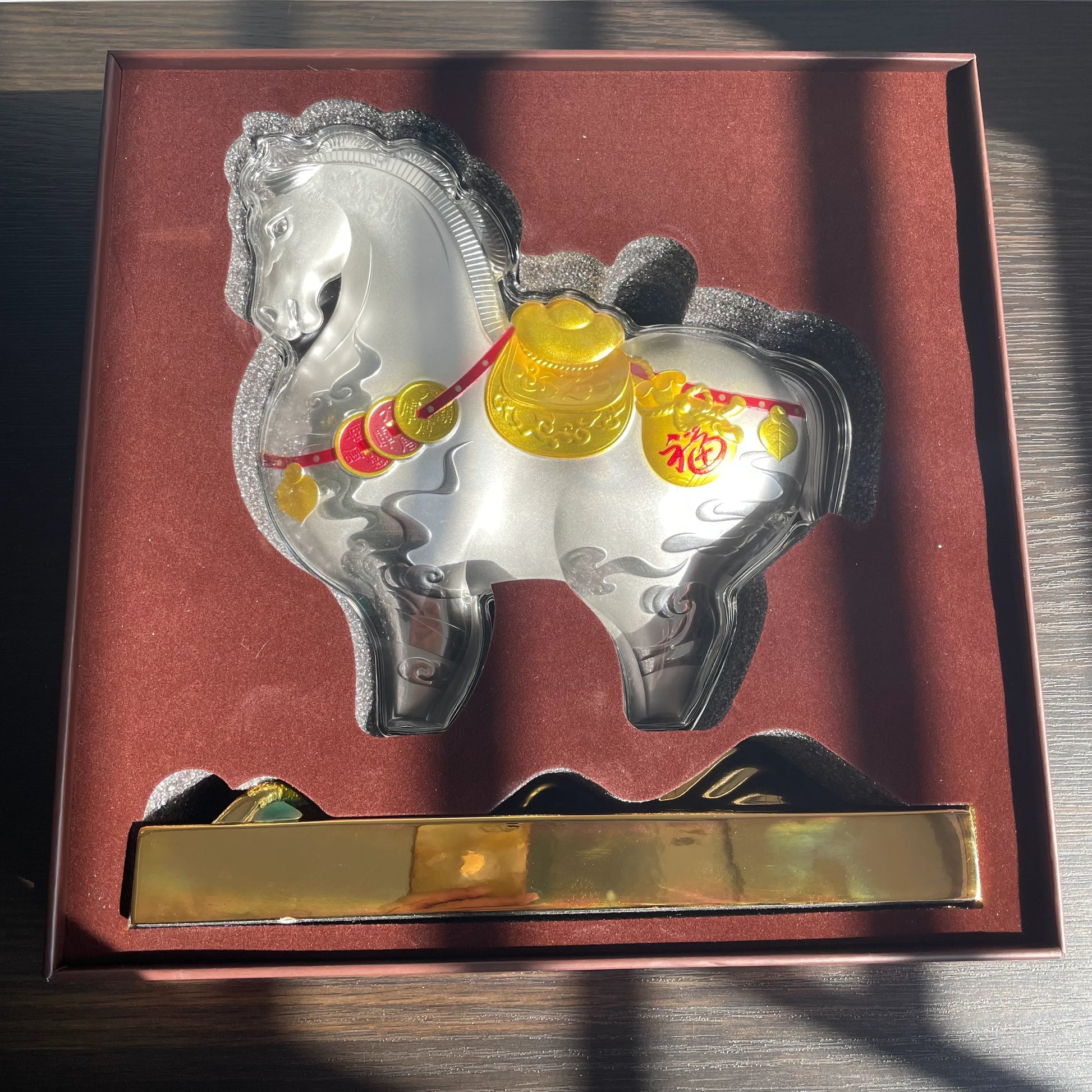 熟練の職人が一点一点心を込めて作り上げた999純銀の「開運駿馬」置物。勝利と飛躍のシンボルである「馬」が力強く前進する姿は、「成功への速やかな道」と「財運の躍動」を象徴し、最強の風水メッセージを体現しています。ビジネスシーンの成功祈願、開業祝い、大切な方への贈り物として、比類なき品格と願いを贈ります。