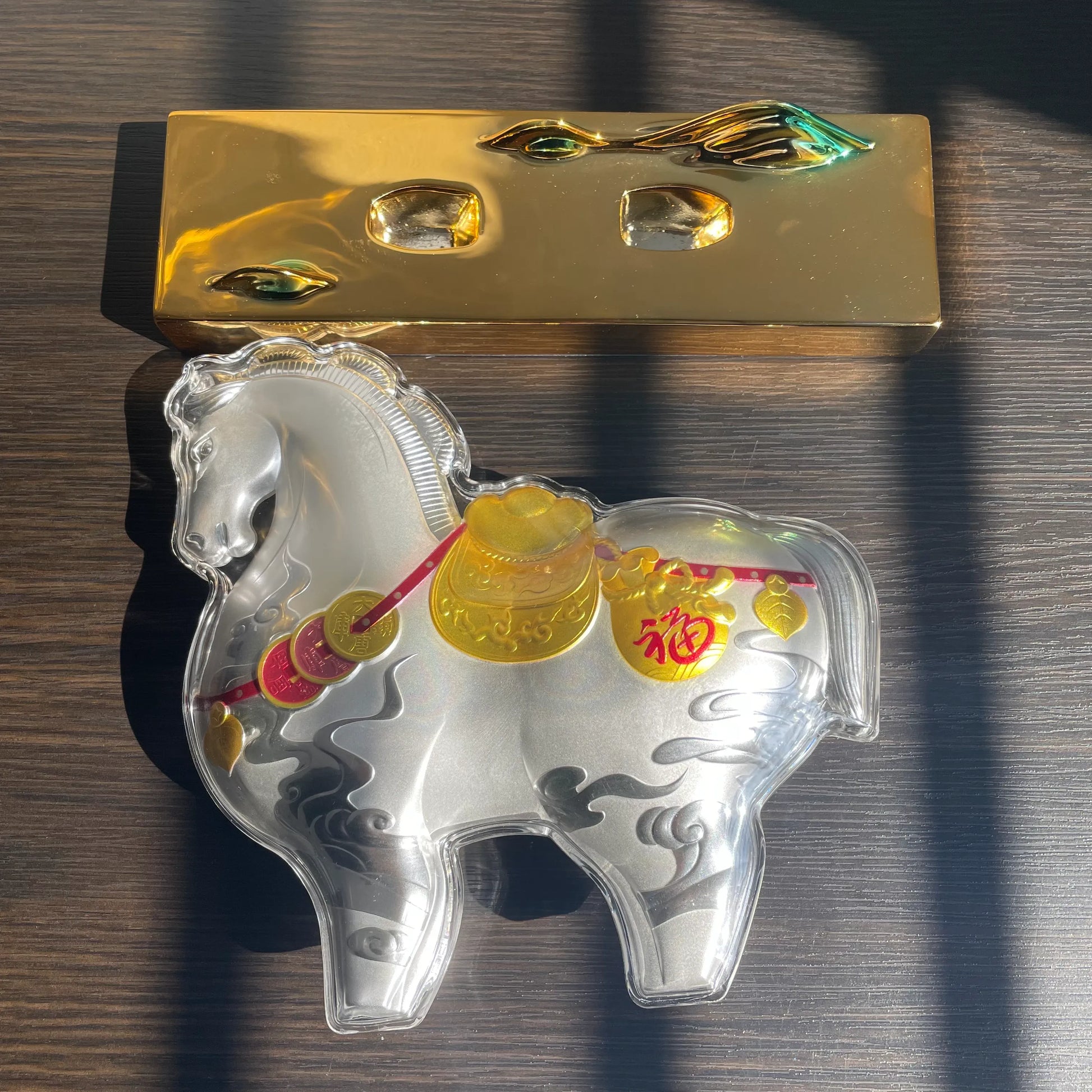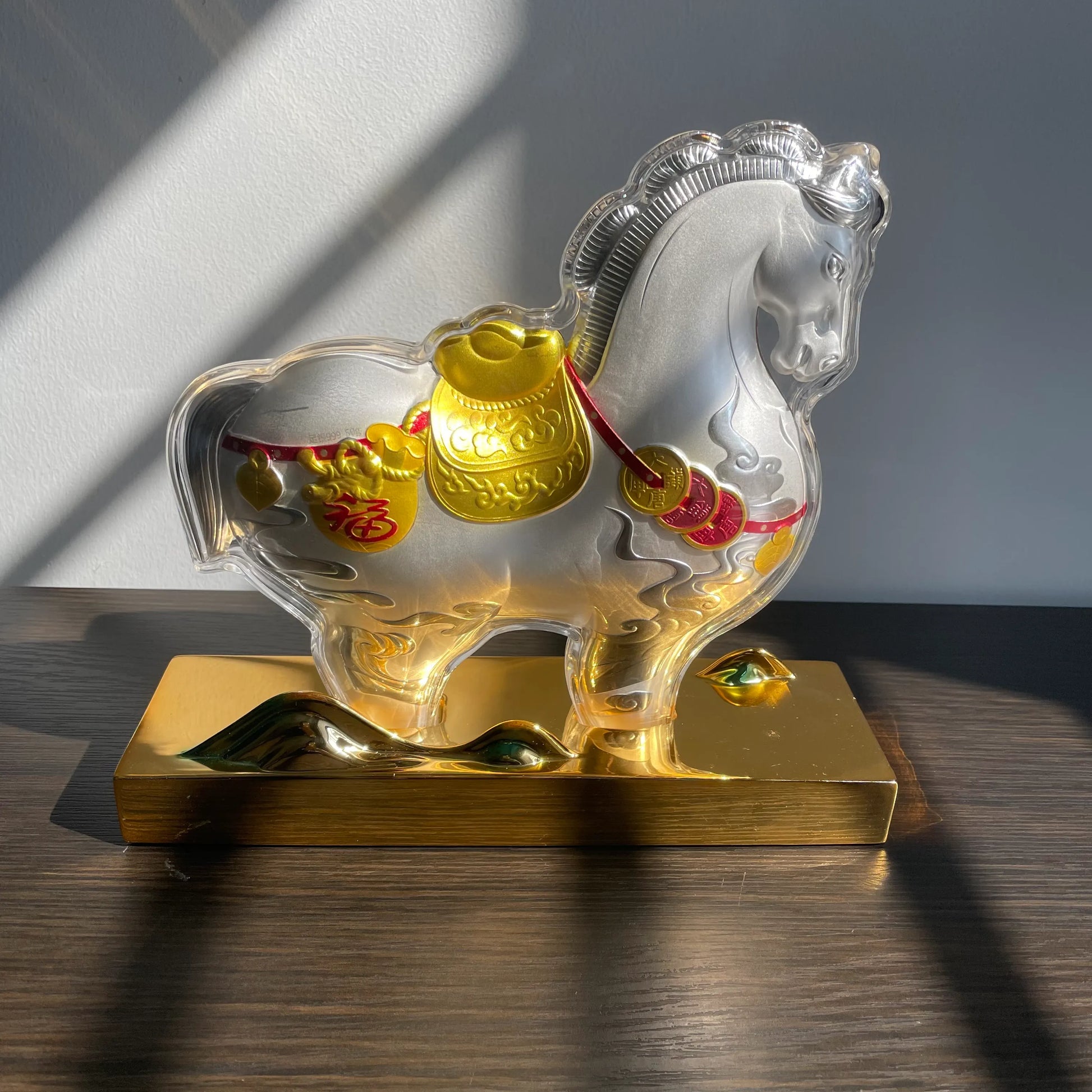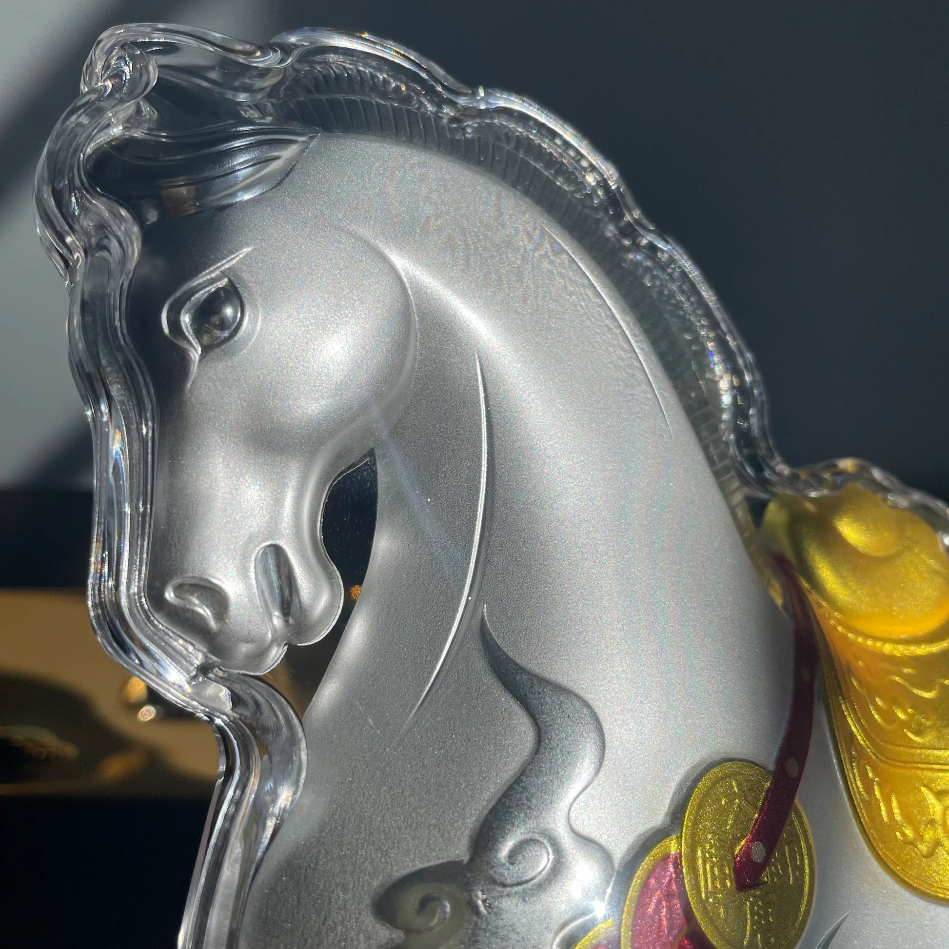 熟練の職人が一点一点心を込めて作り上げた999純銀の「開運駿馬」置物。勝利と飛躍のシンボルである「馬」が力強く前進する姿は、「成功への速やかな道」と「財運の躍動」を象徴し、最強の風水メッセージを体現しています。ビジネスシーンの成功祈願、開業祝い、大切な方への贈り物として、比類なき品格と願いを贈ります。